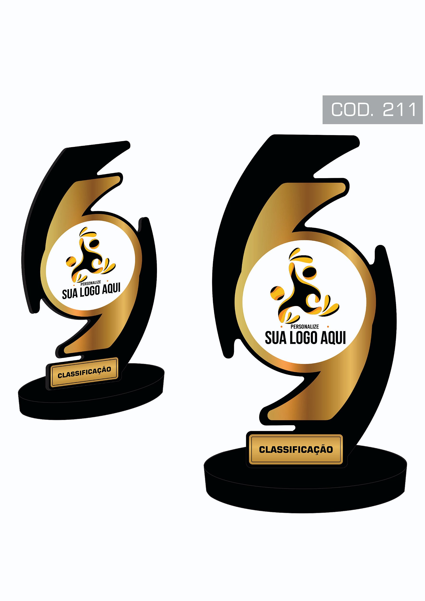 - Este produto permite ao cliente personalizar seu arquivo/arte para ser impressa na etiqueta e colada no troféu.