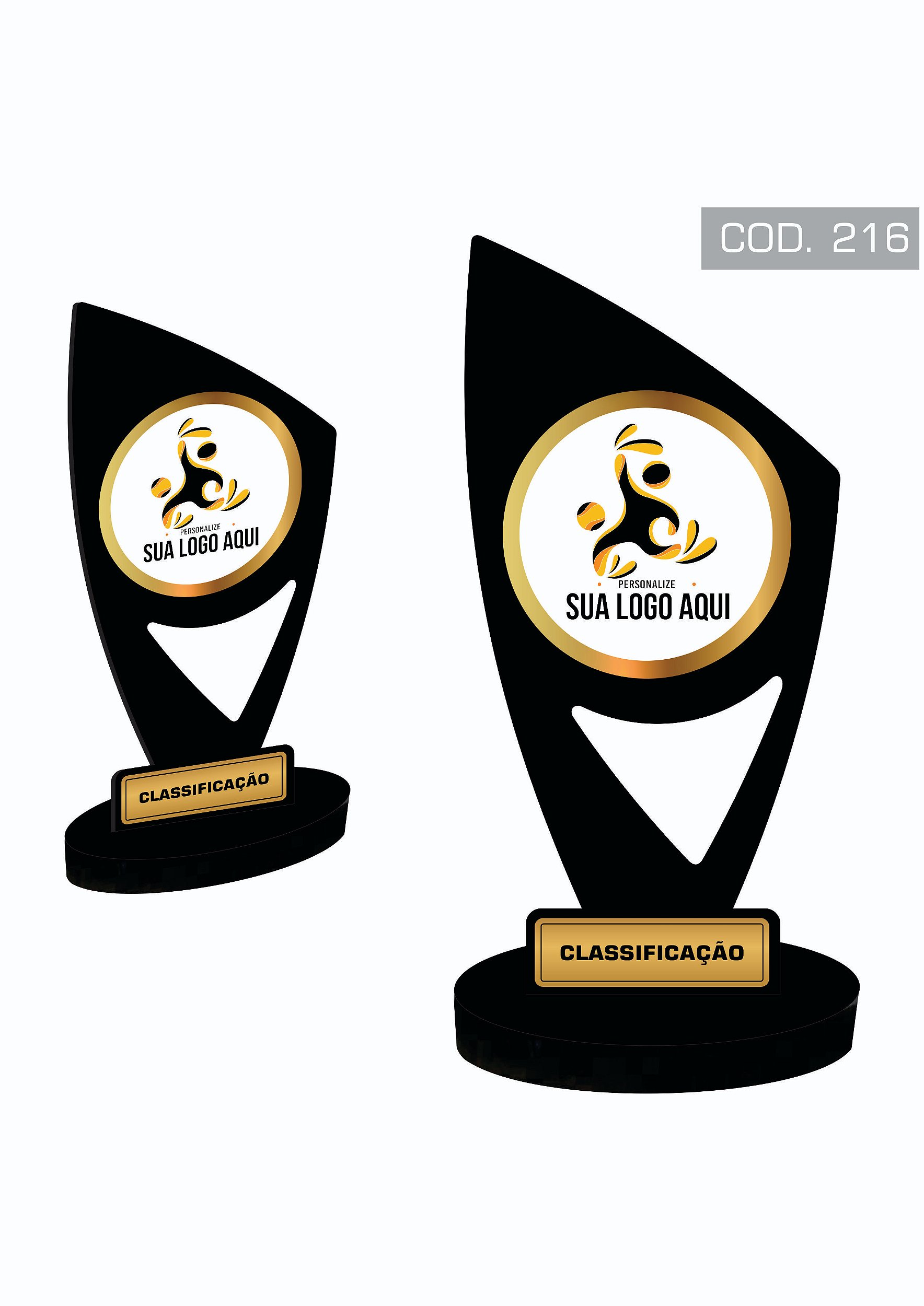 - Este produto permite ao cliente personalizar seu arquivo/arte para ser impressa na etiqueta e colada no troféu.